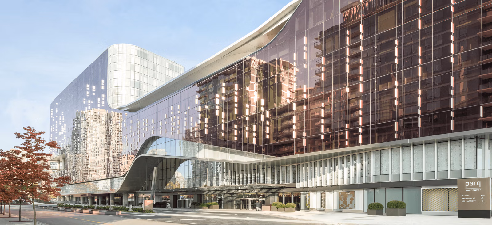 Parq Vancouver: Western Canada’s first urban resort with two Marriott hotels, 72,000-sq-ft casino, rooftop park, and Canada’s largest ballroom.
